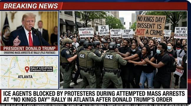 • JUST IN; ICE Agents Blocked by Protesters During Attempted Mass Arrests at “No Kings Day” Rally in Atlanta after Donald Trump’s Order