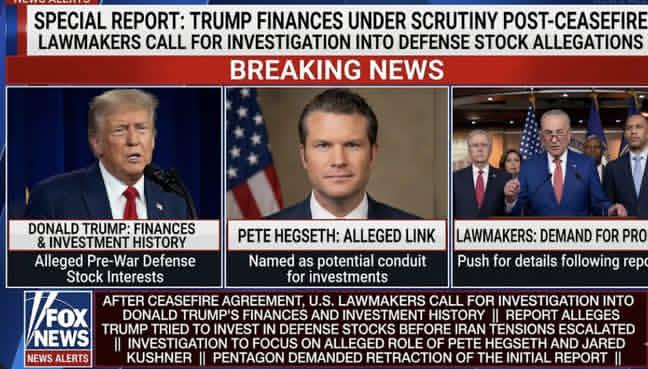 Reports surfaced suggesting that individuals connected to Defense Secretary Pete Hegseth may have explored investing millions into defense-related funds just weeks before the Iran war began. The alleged investment attempt involved defense-linked assets (companies tied to military contracts). The timing raised immediate concerns about possible insider knowledge and war-profiteering risks. Pentagon Pushes Back HARD The Pentagon quickly fired back, calling the report: “Entirely false and fabricated” Officials demanded an immediate retraction, insisting neither Hegseth nor his representatives pursued such investments. � Benzinga +1 Lawmakers Demand Answers Despite the denial, U.S. lawmakers—particularly Senate Democrats—are now calling for a full investigation into financial dealings tied to the administration. Key concerns include: Whether anyone had advance knowledge of military action Potential violations of federal ethics laws Broader scrutiny into Trump’s finances and investment history One group of senators warned that, if true, such actions would represent: “A profound conflict of interest… and betrayal of the nation.” � ABC News Why This Matters This controversy comes at a sensitive moment: Defense stocks have been volatile following the ceasefire, reflecting how geopolitical events can impact markets. � Barron’s Allegations of financial moves tied to military decisions could trigger major legal and political consequences. It raises deeper questions about transparency, ethics, and the intersection of war and profit. What Happens Next? Congressional inquiries could expand into a formal investigation Financial disclosures and communications may come under scrutiny The White House could face mounting political pressure as the story develops Bottom Line: Even as guns fall silent after the ceasefire, a new battle is brewing in Washington—one that could reshape public trust in leadership and expose the hidden financial stakes behind global conflict.