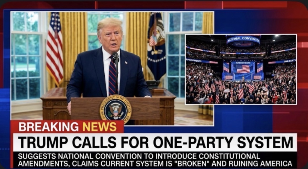 U.S. President Donald Trump has sparked a nationwide political firestorm after calling for a constitutional convention to fundamentally reshape the American political system, including remarks suggesting the United States should move toward a more unified, single-party structure.